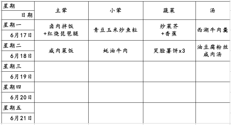 新普陀小学西校2023学年第二学期第18周午餐菜单