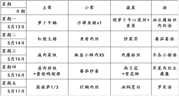 新普陀小学西校2023学年第二学期第13周午餐菜单