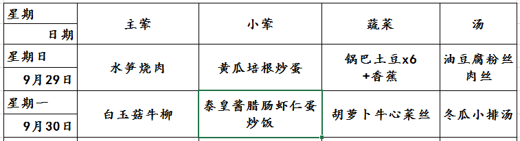 新普陀小学西校2024学年第一学期第5周午餐菜单