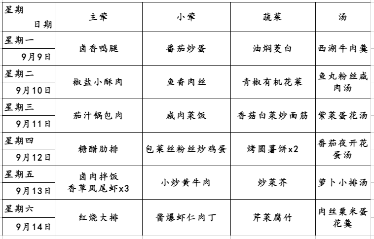 新普陀小学西校2024学年第一学期第2周午餐菜单