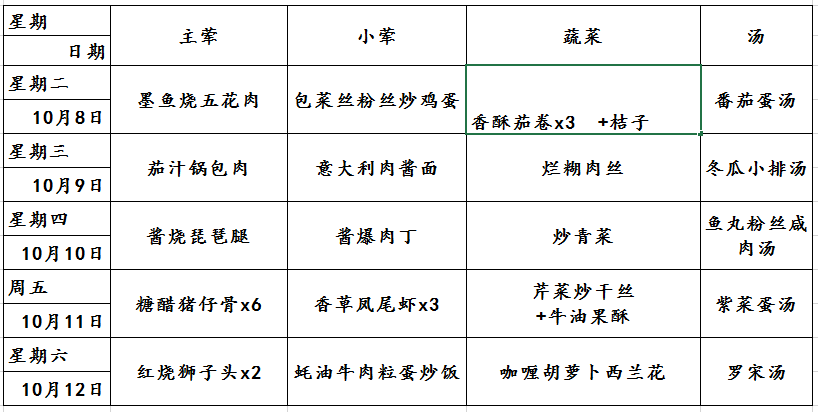 新普陀小学西校2024学年第一学期第6周午餐菜单