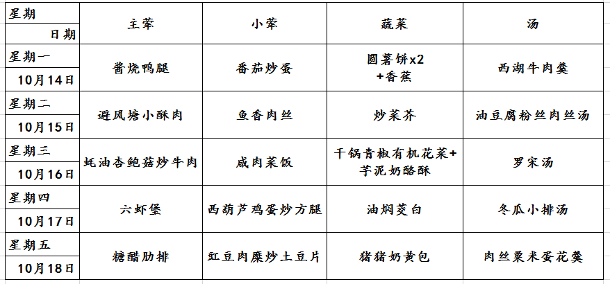 新普陀小学西校2024学年第一学期第7周午餐菜单